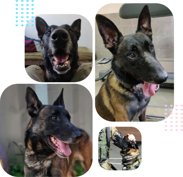 זה הכלב שלי גאדג’ו. כלב תקיפה וותיק בעל מספר פעילויות גבוה בהרבה מהרגיל ביחידה (תלת ספרתי), שהגיע לגיל 8 והגיע זמנו לנוח ולצאת הבייתה.